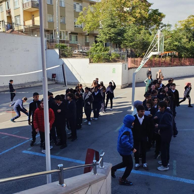 "Afetler ve Dayanıklılık" Ayı kapsamında okullarımızda eş zamanlı olarak deprem tatbikatı gerçekleştirilmiştir.